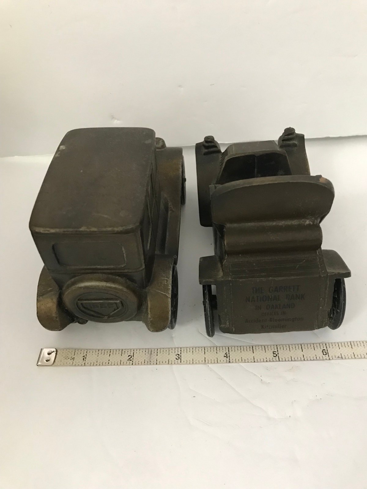 2 Brass Antique Car Truck Banks Collectible Solid Metal